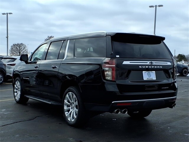 Shop where customers always come first! We're Green on south 6th Street in Springfield. **Green Mazda Internet Price Includes Trade In Assistance. We NEED TRADES. Without trades we run out of vehicles like this to offer to our customers!**See dealer for details. 2021 Chevrolet Suburban Premier Black 10-Speed Automatic with Overdrive 4WD EcoTec3 5.3L V8 Recent Arrival! Odometer is 5426 miles below market average! License Plate Front Mounting Package, Preferred Equipment Group 1LZ (12-Way Power Driver & Passenger Seat Adjusters, 1st & 2nd Row Color-Keyed Carpeted Floor Mats, 2 USB Data Ports, 2-Speed Active Electronic AutoTrac Transfer Case, 3rd Row 60/40 Power-Folding Split-Bench, Auto-Dimming Inside Rear-View Mirror, Automatic Heated Steering Wheel, Bose 10-Speaker Surround w/CenterPoint, Bright Front & Rear Door Sill Plates, Chrome Door Handles w/Body-Color Strip, Chrome Mirror Caps, Color-Keyed Carpeting Floor Covering, Driver & Front Outboard Passenger Airbags, Dual Exhaust System, Enhanced Driver Information Center, Floor Console w/Storage Area, Front & Rear Park Assist, Hands-Free Rear Power Programmable Liftgate, HD Radio, Heated & Ventilated Driver & Front Passenger Seats, Heated 2nd Row Outboard Seats, Heated Driver & Front Passenger Seats, Hill Descent Control, Infotainment Display, Lane Change Alert w/Side Blind Zone Alert, Lane Keep Assist w/Lane Departure Warning, Leather-Wrapped Steering Wheel, LED Daytime Running Lamps, Memory Settings, Outside Heated Power-Adjustable Mirrors, Power Release 2nd Row Bucket Seats, Power Tilt & Telescopic Steering Column, Rear Cross Traffic Alert, Remote Start, Safety Alert Seat, SiriusXM Radio w/360L, and Universal Home Remote), 10 Speakers, 20 x 9 Polished Aluminum Wheels, 3.23 Rear Axle Ratio, 3rd row seats: split-bench, 4-Wheel Disc Brakes, ABS brakes, Adaptive suspension, Air Conditioning, Alloy wheels, AM/FM radio: SiriusXM with 360L, Apple CarPlay/Android Auto, Auto High-beam Headlights, Auto-dimming door mirrors, Auto-dimming Rear-View mirror, Auto-leveling suspension, Automatic temperature control, Brake assist, Bumpers: body-color, Compass, Delay-off headlights, Driver door bin, Driver vanity mirror, Dual front impact airbags, Dual front side impact airbags, Dual-Pane Power Panoramic Sunroof, Electronic Stability Control, Emergency communication system: OnStar and Chevrolet connected services capable, Four wheel independent suspension, Front & Rear Black Bowtie Emblems (LPO), Front anti-roll bar, Front Bucket Seats, Front Center Armrest, Front dua