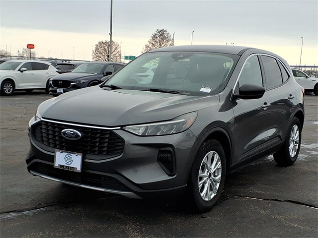 Shop where customers always come first! We're Green on south 6th Street in Springfield. **Green Mazda Internet Price Includes Trade In Assistance. We NEED TRADES. Without trades we run out of vehicles like this to offer to our customers!**See dealer for details. 2023 Ford Escape Active Carbonized Gray Metallic 8-Speed Automatic FWD 1.5L EcoBoost Recent Arrival! 27/34 City/Highway MPG Cold Weather Package (Heated Front Row Seats, Heated Sideview Mirrors, Heated Steering Wheel, and Remote Starter System), Equipment Group 200A, 3.81 Axle Ratio, 4-Wheel Disc Brakes, 6 Speakers, ABS brakes, Air Conditioning, Alloy wheels, AM/FM radio: SiriusXM, AM/FM Stereo, Auto High-beam Headlights, Automatic temperature control, Brake assist, Bumpers: body-color, Compass, Delay-off headlights, Driver door bin, Driver vanity mirror, Dual front impact airbags, Dual front side impact airbags, Electronic Stability Control, Emergency communication system: SYNC 4 911 Assist, Exterior Parking Camera Rear, FordPass Connect, Four wheel independent suspension, Front & Rear Floor Liners w/o Carpet Mats, Front anti-roll bar, Front Bucket Seats, Front Center Armrest, Front dual zone A/C, Front License Plate Bracket, Front reading lights, Fully automatic headlights, Illuminated entry, Knee airbag, Low tire pressure warning, Occupant sensing airbag, Outside temperature display, Overhead airbag, Overhead console, Panic alarm, Passenger door bin, Passenger vanity mirror, Power door mirrors, Power driver seat, Power Liftgate, Power steering, Power windows, Radio data system, Rear anti-roll bar, Rear reading lights, Rear seat center armrest, Rear window defroster, Rear window wiper, Remote keyless entry, Speed control, Speed-sensing steering, Speed-Sensitive Wipers, Split folding rear seat, Spoiler, Steering wheel mounted audio controls, SYNC 4, Tachometer, Telescoping steering wheel, Tilt steering wheel, Traction control, Trip computer, Unique Cloth Front Bucket Seats, Variably intermittent wipers, Wheel-Locking Lug Nuts, and Wheels: 17 Shadow Silver-Painted Aluminum.