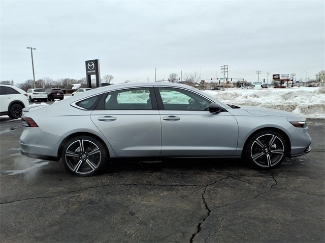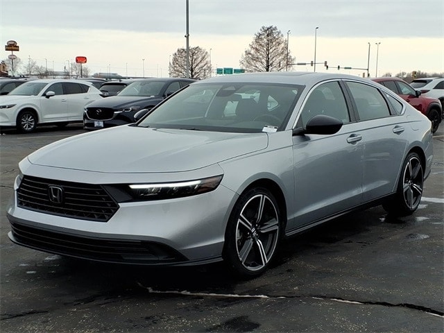 Shop where customers always come first! We're Green on south 6th Street in Springfield. **Green Mazda Internet Price Includes Trade In Assistance. We NEED TRADES. Without trades we run out of vehicles like this to offer to our customers!**See dealer for details. 2024 Honda Accord Hybrid Sport Silver Metallic eCVT FWD 2.0L 16V DOHC 46/41 City/Highway MPG 4-Wheel Disc Brakes, 8 Speakers, ABS brakes, Adaptive Cruise Control: Adaptive Cruise Control (ACC) with Low-Speed Follow, Air Conditioning, Alloy wheels, AM/FM radio, Apple CarPlay/Android Auto, Auto High-beam Headlights, Automatic temperature control, Blind Spot Information (BSI) System warning, Brake assist, Bumpers: body-color, Compass, Delay-off headlights, Driver door bin, Driver vanity mirror, Dual front impact airbags, Dual front side impact airbags, Electronic Stability Control, Emergency communication system: HondaLink, Exterior Parking Camera Rear, Fabric Seat Trim, Four wheel independent suspension, Front anti-roll bar, Front Bucket Seats, Front Center Armrest, Front dual zone A/C, Front reading lights, Fully automatic headlights, Illuminated entry, Knee airbag, Lane departure: Lane Keeping Assist System (LKAS) active, Leather Shift Knob, Leather steering wheel, Low tire pressure warning, Occupant sensing airbag, Outside temperature display, Overhead airbag, Overhead console, Panic alarm, Passenger door bin, Passenger vanity mirror, Power door mirrors, Power driver seat, Power moonroof, Power steering, Power windows, Radio data system, Radio: 180-Watt Audio System, Rear anti-roll bar, Rear reading lights, Rear seat center armrest, Rear side impact airbag, Rear window defroster, Remote keyless entry, Security system, Speed control, Speed-sensing steering, Speed-Sensitive Wipers, Split folding rear seat, Spoiler, Steering wheel mounted audio controls, Telescoping steering wheel, Tilt steering wheel, Traction control, Trip computer, Variably intermittent wipers, and Wheels: 19 x 8.5J Berlina Black.