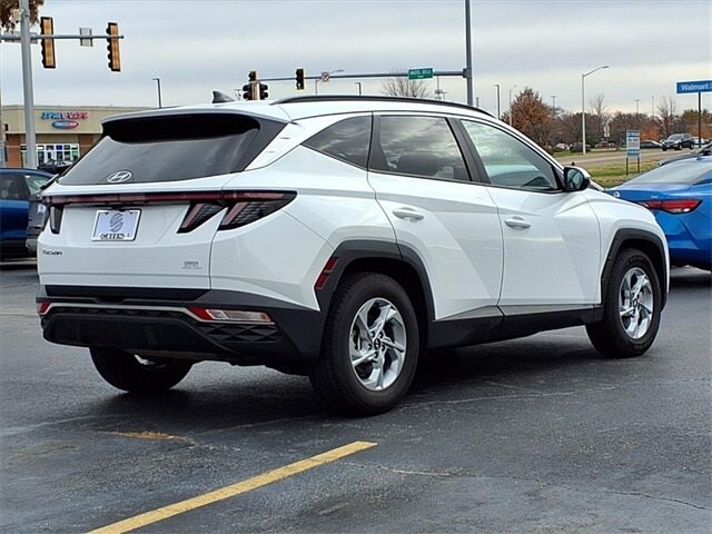 Shop where customers always come first! We're Green on south 6th Street in Springfield. **Green Mazda Internet Price Includes Trade In Assistance. We NEED TRADES. Without trades we run out of vehicles like this to offer to our customers!**See dealer for details. 2023 Hyundai Tucson SEL Serenity White Pearl 8-Speed Automatic with SHIFTRONIC FWD 2.5L I4 DGI DOHC 16V LEV3-ULEV70 187hp 25/32 City/Highway MPG Option Group 01, 3.648 Axle Ratio, 4-Wheel Disc Brakes, 6 Speakers, ABS brakes, Air Conditioning, Alloy wheels, AM/FM radio: SiriusXM, Apple CarPlay & Android Auto, Auto High-beam Headlights, Brake assist, Bumpers: body-color, Delay-off headlights, Driver door bin, Driver vanity mirror, Dual front impact airbags, Dual front side impact airbags, Electronic Stability Control, Emergency communication system: Blue Link Connected Car Service (3-year complimentary subscription), Four wheel independent suspension, Front anti-roll bar, Front Bucket Seats, Front Center Armrest, Front reading lights, Fully automatic headlights, H-Tex Seat Trim, Heated door mirrors, Heated Front Bucket Seats, Heated front seats, Illuminated entry, Low tire pressure warning, Occupant sensing airbag, Outside temperature display, Overhead airbag, Overhead console, Panic alarm, Passenger door bin, Passenger vanity mirror, Power door mirrors, Power driver seat, Power Liftgate, Power steering, Power windows, Radio data system, Radio: AM/FM/HD/SiriusXM Audio System, Rear anti-roll bar, Rear seat center armrest, Rear window defroster, Rear window wiper, Remote keyless entry, Roof rack: rails only, Security system, Speed control, Split folding rear seat, Spoiler, Stain & Odor Resistant Cloth Seat Trim, Steering wheel mounted audio controls, Tachometer, Telescoping steering wheel, Tilt steering wheel, Traction control, Trip computer, Turn signal indicator mirrors, Variably intermittent wipers, and Wheels: 17 x 7.0J Alloy.