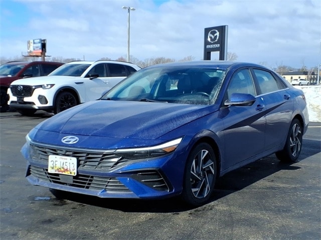 Shop where customers always come first! We're Green on south 6th Street in Springfield. **Green Mazda Internet Price Includes Trade In Assistance. We NEED TRADES. Without trades we run out of vehicles like this to offer to our customers!**See dealer for details. 2024 Hyundai Elantra Limited Intense Blue CVT FWD I4 Priced below KBB Fair Purchase Price! Recent Arrival! 31/40 City/Highway MPG Option Group 01, 17 x 7.0J Alloy Wheels, 4-Wheel Disc Brakes, 8 Speakers, ABS brakes, Air Conditioning, Alloy wheels, AM/FM radio: SiriusXM, Apple CarPlay & Android Auto, Auto High-beam Headlights, Auto-dimming Rear-View mirror, Automatic temperature control, Brake assist, Bumpers: body-color, Delay-off headlights, Driver door bin, Driver vanity mirror, Dual front impact airbags, Dual front side impact airbags, Electronic Stability Control, Emergency communication system: Bluelink+, Front anti-roll bar, Front Bucket Seats, Front Center Armrest, Front dual zone A/C, Front reading lights, Front wheel independent suspension, Fully automatic headlights, Heated door mirrors, Heated Front Bucket Seats, Heated front seats, Illuminated entry, Leatherette Seats, Low tire pressure warning, Navigation System, Occupant sensing airbag, Outside temperature display, Overhead airbag, Overhead console, Panic alarm, Passenger door bin, Passenger vanity mirror, Power door mirrors, Power driver seat, Power moonroof, Power steering, Power windows, Radio: AM/FM/HD/SiriusXM Display Audio, Rear seat center armrest, Rear side impact airbag, Rear window defroster, Remote keyless entry, Security system, Speed control, Speed-sensing steering, Split folding rear seat, Steering wheel mounted audio controls, Tachometer, Telescoping steering wheel, Tilt steering wheel, Traction control, Trip computer, Turn signal indicator mirrors, and Variably intermittent wipers.