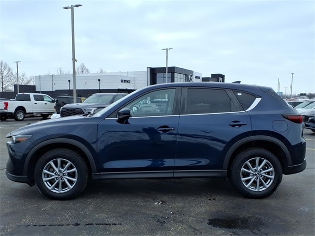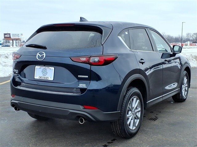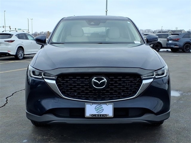 Shop where customers always come first! We're Green on south 6th Street in Springfield. **Green Mazda Internet Price Includes Trade In Assistance. We NEED TRADES. Without trades we run out of vehicles like this to offer to our customers!**See dealer for details. 2022 Mazda CX-5 2.5 S Preferred Package Deep Crystal Blue Mica 6-Speed Automatic AWD SKYACTIVÃ 2.5L 4-Cylinder DOHC 16V Recent Arrival! 24/30 City/Highway MPG 4-Wheel Disc Brakes, 4.624 Axle Ratio, 6 Speakers, ABS brakes, Air Conditioning, All-Weather Floor Mats, Alloy wheels, AM/FM radio, AppLink/Apple CarPlay and Android Auto, Auto High-beam Headlights, Auto-dimming Rear-View mirror, Automatic temperature control, Black Lug Nuts & Black Wheel Locks, Bose Audio Credit, Brake assist, Bumpers: body-color, Delay-off headlights, Driver door bin, Driver vanity mirror, Dual front impact airbags, Dual front side impact airbags, E911 Automatic Emergency Notification, Electronic Stability Control, Emergency communication system: MAZDA CONNECT, Exterior Parking Camera Rear, Four wheel independent suspension, Front anti-roll bar, Front Bucket Seats, Front Center Armrest w/Storage, Front dual zone A/C, Front reading lights, Fully automatic headlights, Garage door transmitter: HomeLink, Heated Front Bucket Seats, Heated front seats, Illuminated entry, Infotainment System Voice Command, Leather Seat Trim, Leather Shift Knob, Low tire pressure warning, Memory seat, Multifunction Commander Control, Occupant sensing airbag, Outside temperature display, Overhead airbag, Overhead console, Pandora, Panic alarm, Passenger door bin, Passenger vanity mirror, Power door mirrors, Power driver seat, Power moonroof, Power passenger seat, Power steering, Power windows, Radio Broadcast Data System Program Information, Radio data system, Radio: AM/FM/HD Audio System, Rain sensing wipers, Rear anti-roll bar, Rear Bumper Guard, Rear reading lights, Rear seat center armrest, Rear window defroster, Rear window wiper, Remote keyless entry, SMS Text Msg Audio Delivery & Reply, Speed control, Speed-sensing steering, Split folding rear seat, Spoiler, Steering wheel mounted audio controls, Tachometer, Telescoping steering wheel, Tilt steering wheel, Traction control, Trip computer, Turn signal indicator mirrors, Variably intermittent wipers, and Wheels: 17 x 7J Aluminum Alloy.