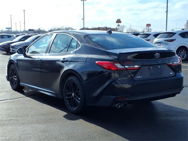 Shop where customers always come first! We're Green on south 6th Street in Springfield. **Green Mazda Internet Price Includes Trade In Assistance. We NEED TRADES. Without trades we run out of vehicles like this to offer to our customers!**See dealer for details. 2025 Toyota Camry SE Midnight Black Metallic eCVT FWD 2.5L 4-Cylinder 16V DOHC Priced below KBB Fair Purchase Price! Recent Arrival! 48/47 City/Highway MPG 4-Wheel Disc Brakes, 6 Speakers, ABS brakes, Air Conditioning, Alloy wheels, AM/FM radio: SiriusXM, Apple CarPlay/Android Auto, Auto High-beam Headlights, Automatic temperature control, Brake assist, Bumpers: body-color, Delay-off headlights, Driver door bin, Driver vanity mirror, Dual front impact airbags, Dual front side impact airbags, Electronic Stability Control, Emergency communication system: Safety Connect (up to 10-year trial subscription), Exterior Parking Camera Rear, Four wheel independent suspension, Front anti-roll bar, Front Bucket Seats, Front Center Armrest, Front dual zone A/C, Front reading lights, Fully automatic headlights, Heated door mirrors, Illuminated entry, Knee airbag, Leather Shift Knob, Leather steering wheel, Low tire pressure warning, Occupant sensing airbag, Outside temperature display, Overhead airbag, Overhead console, Panic alarm, Passenger door bin, Passenger vanity mirror, Power door mirrors, Power driver seat, Power steering, Power windows, Radio data system, Radio: Toyota Audio Multimedia w/12.3 Touchscreen, Radio: Toyota Audio Multimedia w/8 Touchscreen, Rear anti-roll bar, Rear reading lights, Rear seat center armrest, Rear side impact airbag, Rear window defroster, Remote keyless entry, Security system, SofTex & Fabric Seat Trim, Speed control, Speed-sensing steering, Split folding rear seat, Spoiler, Steering wheel mounted audio controls, Telescoping steering wheel, Tilt steering wheel, Traction control, Trip computer, Turn signal indicator mirrors, Variably intermittent wipers, and Wheels: 18 Black-Finished Alloy.