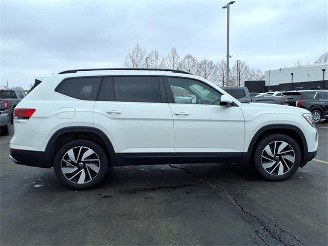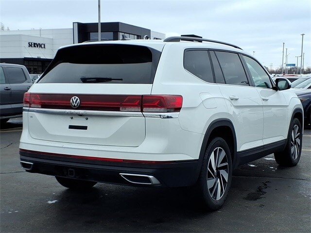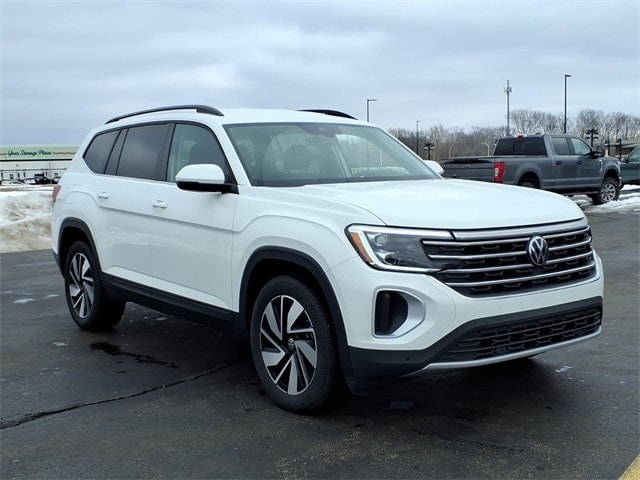 Shop where customers always come first! We're Green on south 6th Street in Springfield. **Green Mazda Internet Price Includes Trade In Assistance. We NEED TRADES. Without trades we run out of vehicles like this to offer to our customers!**See dealer for details. 2025 Volkswagen Atlas 2.0T SE w/Technology Pure White 8-Speed Automatic FWD 2.0L TSI Priced below KBB Fair Purchase Price! Recent Arrival! 20/26 City/Highway MPG 20 2-tone machined alloy wheels, 3rd row seats: split-bench, 4-Wheel Disc Brakes, 6 Speakers, ABS brakes, Air Conditioning, Alloy wheels, AM/FM radio: SiriusXM with 360L, Auto High-beam Headlights, Auto-dimming Rear-View mirror, Automatic temperature control, Brake assist, Bumpers: body-color, Compass, Delay-off headlights, Driver door bin, Driver vanity mirror, Dual front impact airbags, Dual front side impact airbags, Electronic Stability Control, Emergency communication system: VW Car-Net Safe & Secure 5-year, Exterior Parking Camera Rear, Four wheel independent suspension, four-wheel independent suspension, Front anti-roll bar, Front Bucket Seats, Front Center Armrest, Front dual zone A/C, Front fog lights, Front reading lights, Fully automatic headlights, heated and Actively ventilated front bucket seats, Heated door mirrors, Heated front seats, Heated steering wheel, Illuminated entry, Low tire pressure warning, MIB3 composition media radio, Occupant sensing airbag, Outside temperature display, Overhead airbag, Overhead console, Panic alarm, Passenger door bin, Passenger vanity mirror, perforated V-Tex leatherette seating surfaces, Power door mirrors, Power driver seat, Power Liftgate, Power steering, Power windows, Radio data system, Rain sensing wipers, Rear air conditioning, Rear anti-roll bar, Rear reading lights, Rear seat center armrest, Rear window defroster, Rear window wiper, Remote keyless entry, Security system, Speed control, Speed-sensing steering, Split folding rear seat, Spoiler, Steering wheel mounted audio controls, Tachometer, Telescoping steering wheel, Tilt steering wheel, Traction control, Trip computer, Turn signal indicator mirrors, Variably intermittent wipers, and Ventilated front seats.